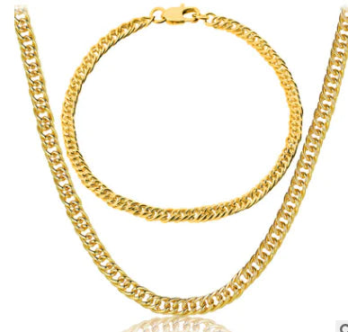 Discover the allure of our exquisite 18K gold jewelry set, featuring a stunning necklace and bracelet that perfectly blend style and elegance. This fashionable accessory is designed for those who appreciate the finer things in life.