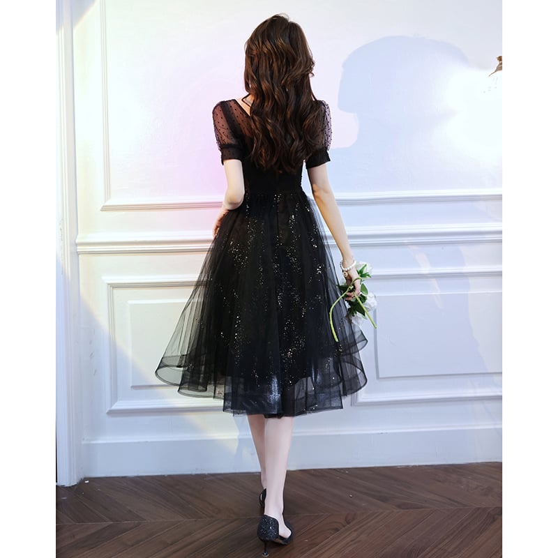 Black Sparkly Lace Mini Cocktail Evening Dress
