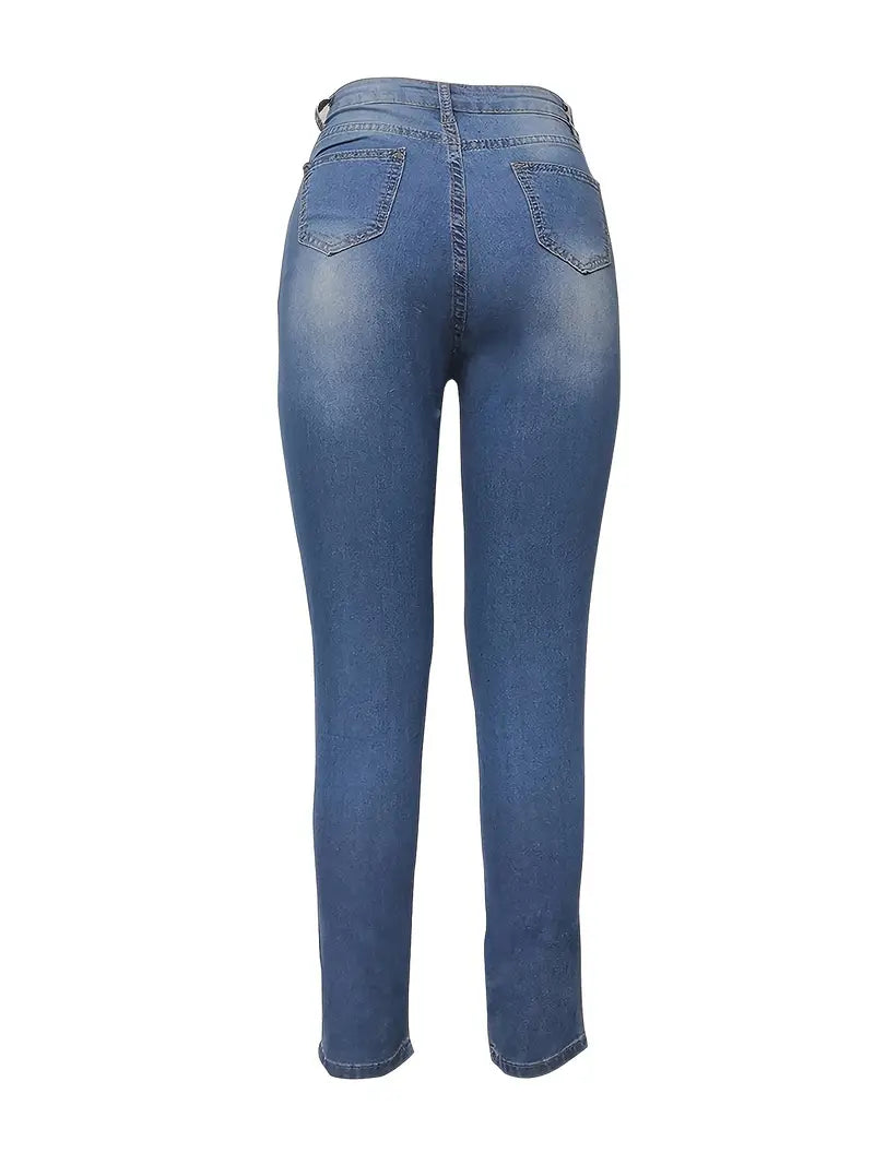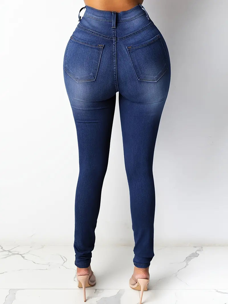 Blue High Waist Skinny Jeans with Casual Slash Pockets