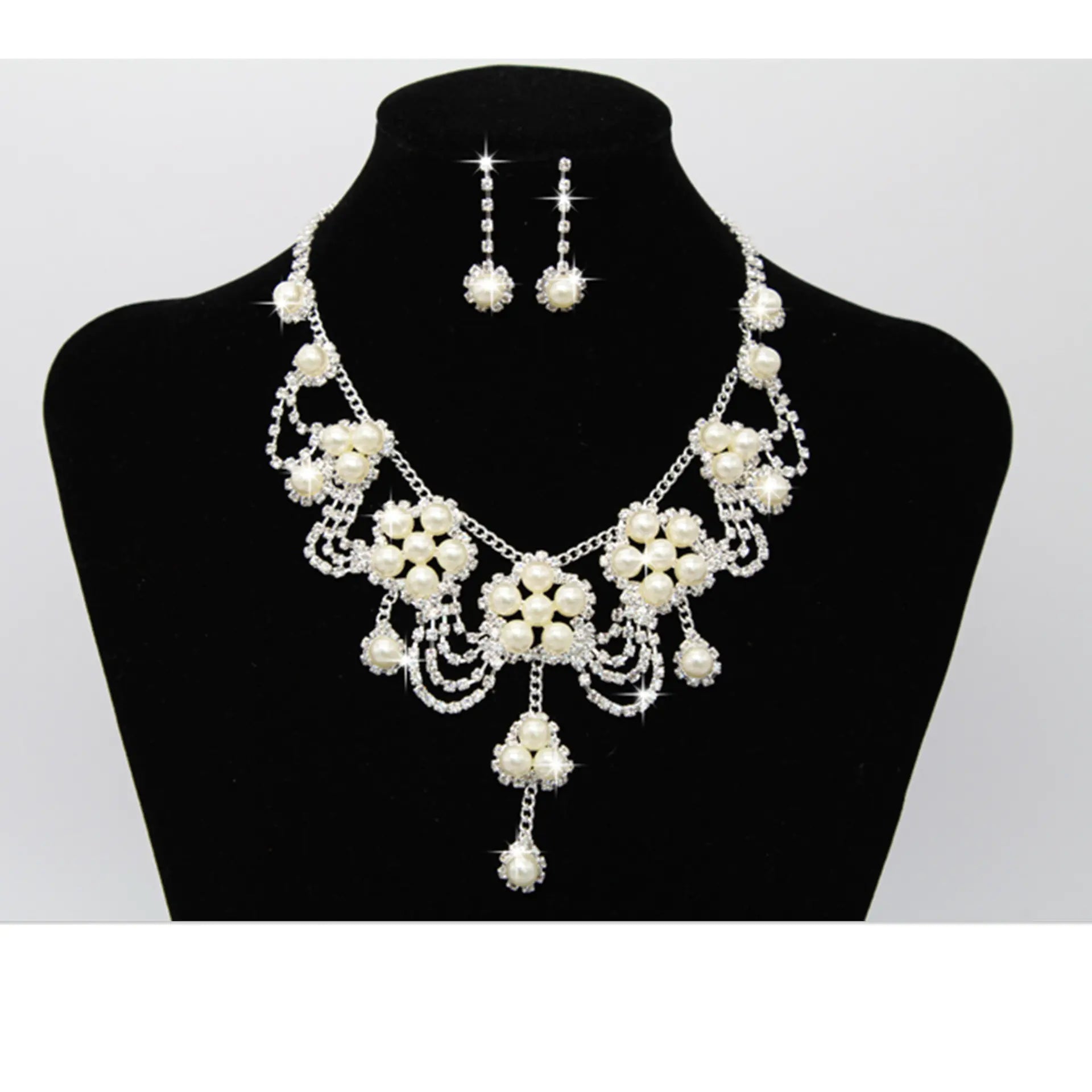 Bridal Pearl Necklace and Rhinestone Jewelry Set
