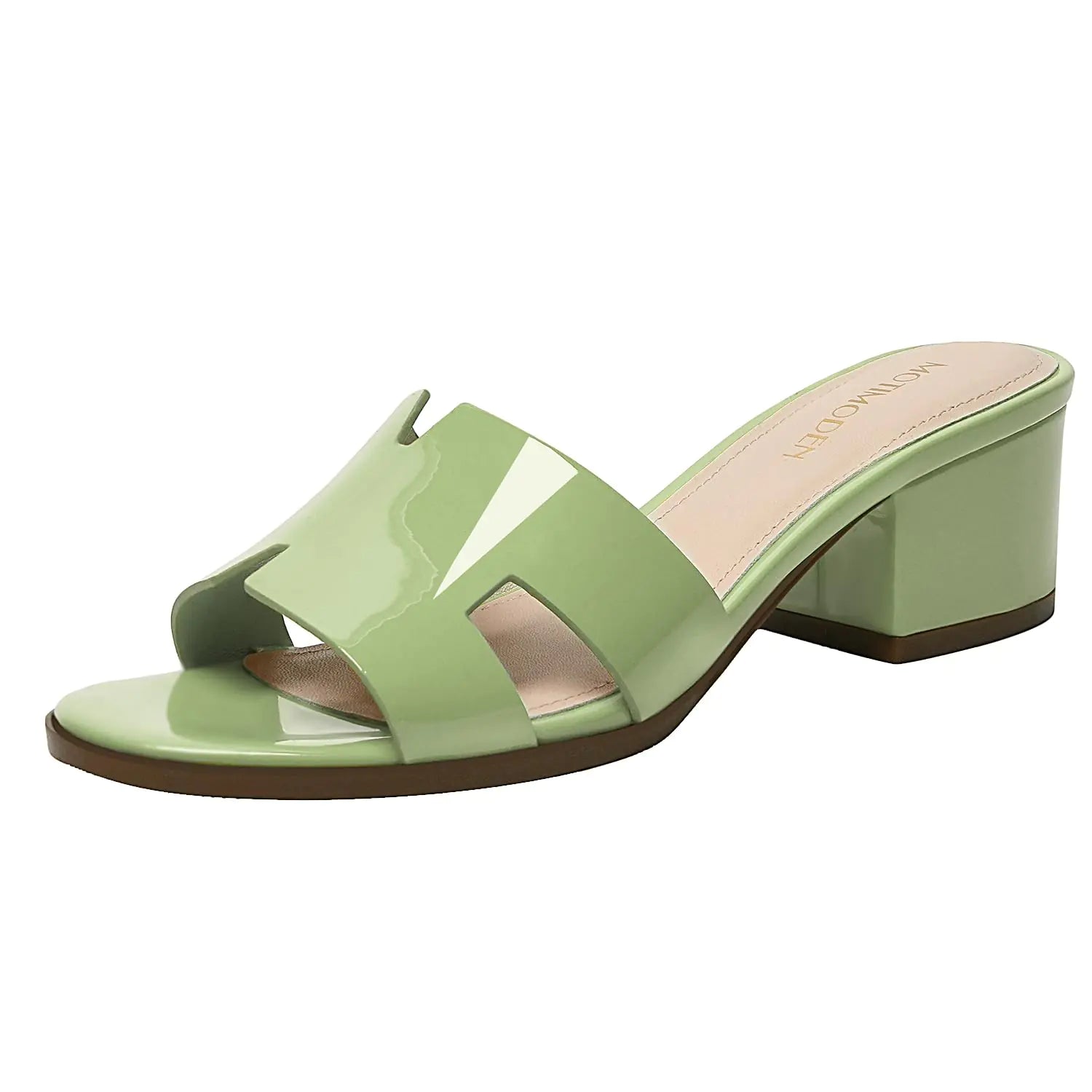 MOTIMODEN Womens Chunky Open Toe Low Block Heels Kitten Dressy Heels for Women Low Heel Sandals for Women Summer Comfy Heels XYY-M1003GN Green