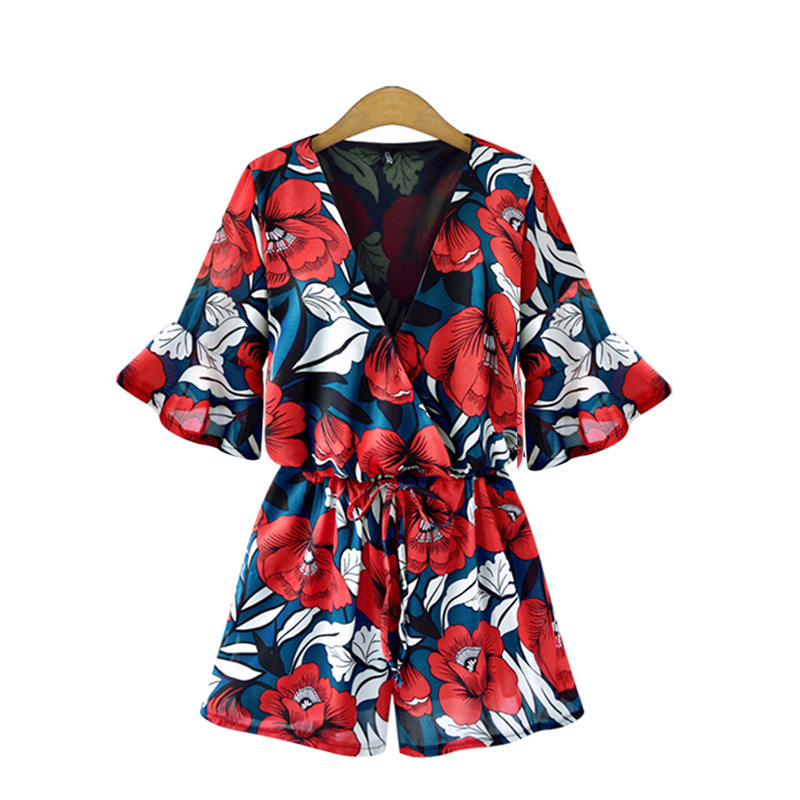 Plus Size V-Neck Floral Chiffon Romper for Summer