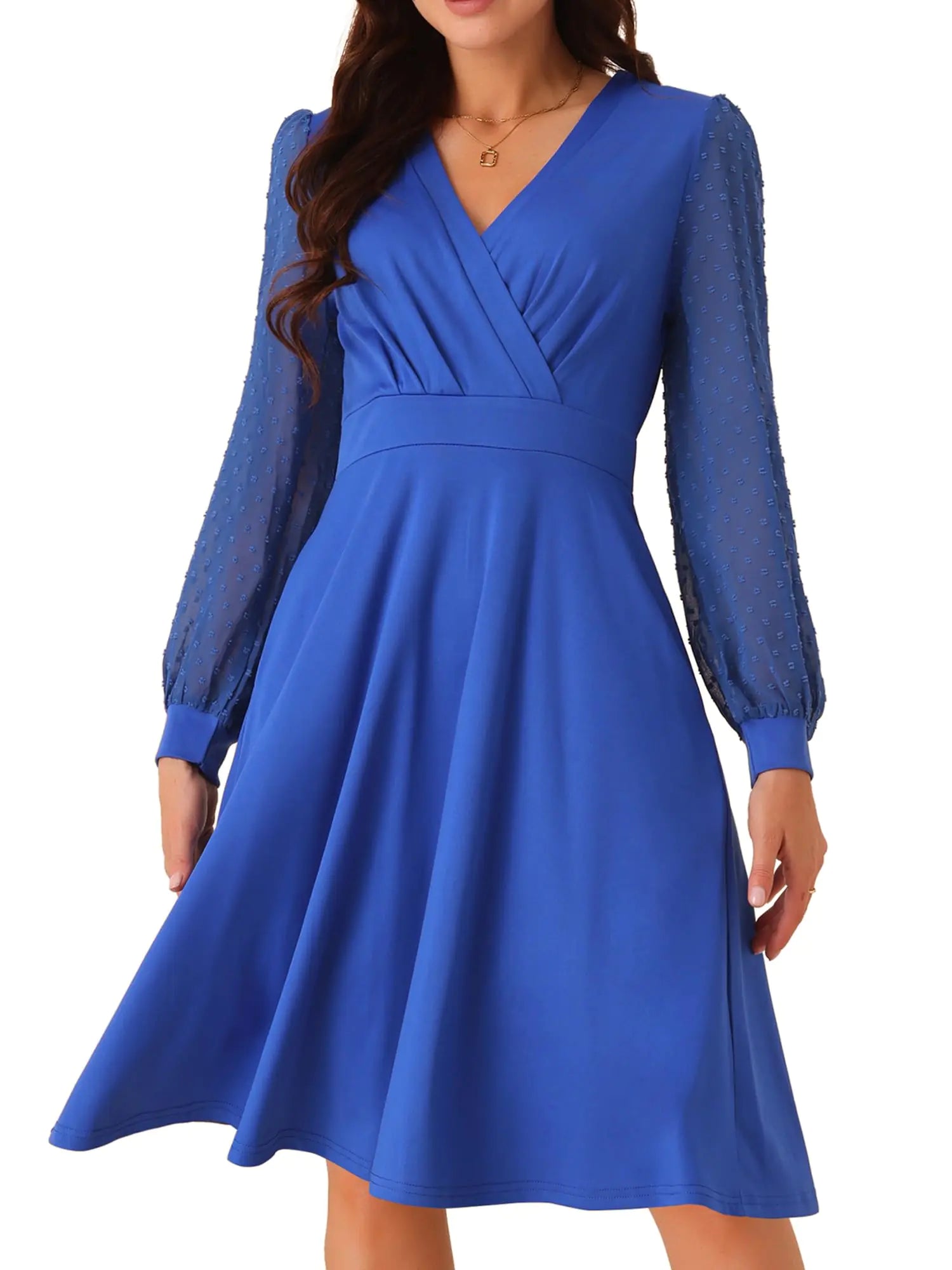 [97% Polyester 3% Spandex.Long sleeve casual dress is made of soft and lightweight fabric making it perfect for spring fall winter. Fall dresses is comfortable breathable and stunning Features: Swiss Dots Lantern Long Sleeve Sheer Sleeve Wrap V Neck High Waist Knee LengthCocktail dresses for women wedding guest Style: White wrap dress for women showcase a v neckline that flatters the collarbone and a wrap design that cinches the waist and creates a beautiful silhouette Occasion :The women dresses is perfer for casual daily beach holiday wedding guest family gathering outdoor travel homecoming party shopping dinner date and other events. You will love this vestidos elegantes de mujer The elegant dresses for women have a chic and understated design that makes it easy to accessorize with your favorite shoes]