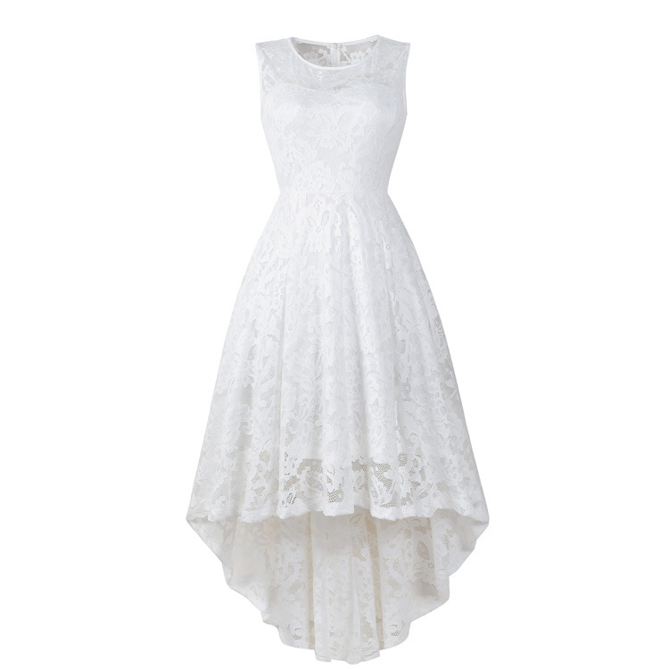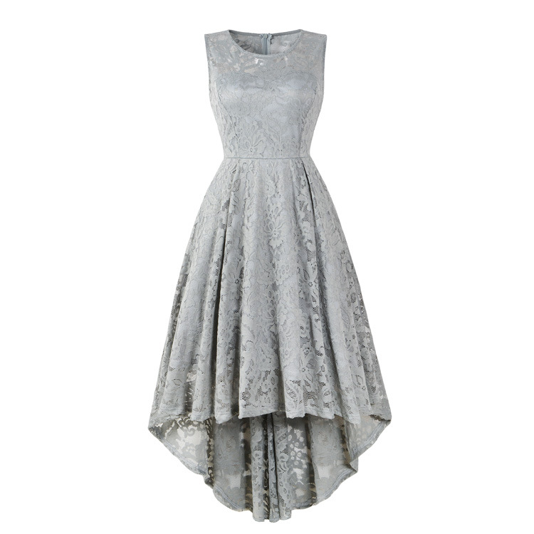 Step into the spotlight with our stunning high-low lace cocktail dress, designed to make every occasion special. Featuring a sleeveless silhouette and a mesmerizing irregular skirt, this dress offers a perfect blend of elegance and flair. The mid-length skirt falls gracefully, ensuring you look effortlessly chic whether you're at a party, wedding, or any festive gathering.