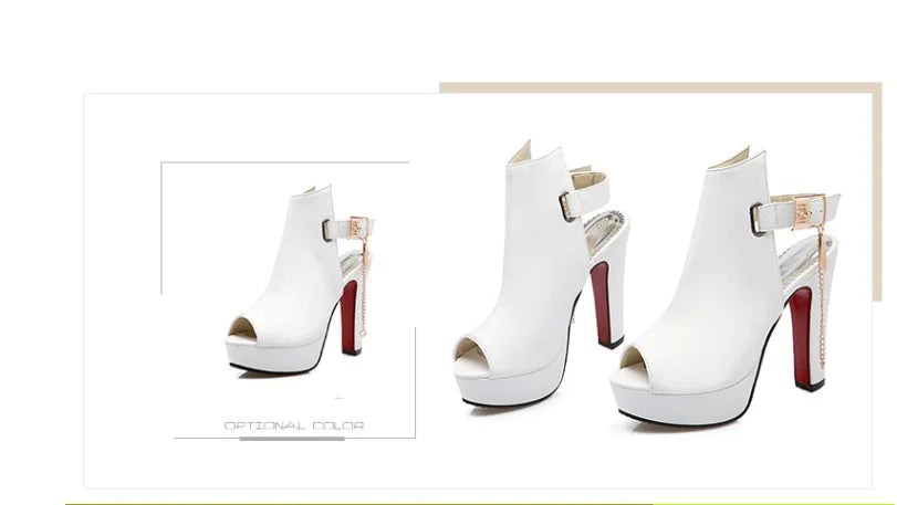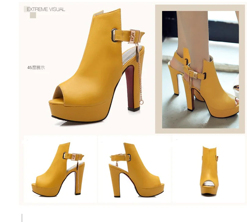 The unique fish mouth toe shape offers a trendy touch, while the high-quality PU upper material ensures durability and ease of wear. Whether you're dressing up for a night out or keeping it casual, these sandals are versatile enough to match your outfit.